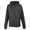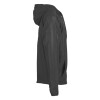82 GSM, 100%polyester; Exterior water-resistant coating; Matte finish eyelets and zippers; Rubber zipper pull tab, reversed zipper tape; Fine mesh hood liner; Scuba neck, elastic binding on cuff; Welt pockets with mesh pocket bags; Storm flap cover on top of zipper to protect the neck; Toggle at waistband, locker loop in center neck;