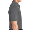 5 oz./yd2 / 172 gsm, 100% polyester face plaited to 60% polyester, 40% cotton back (total overall garment 61% polyester, 39% cotton); Proprietary dual-sided mesh pique knit constructed of fine denier wicking polyester on the outside and soft-as-cotton wicking blend on the inside; Moisture-wicking performance with UV 15-39 protection; Matching flat-knit collar; Luxury, comfort and performance in one; Three-button placket; Dyed-to-match buttons;