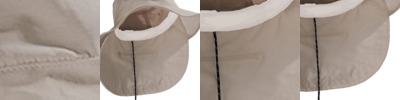 - Matching color self-fabric top button, sweatband and seam tape