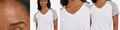 - Contrast trim at neck and sleeve hem