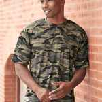 Badger Adult Poly Camouflage Performance Tee. 100% Sublimated polyester moisture management/antimicrobial performance fabric. Badger sport paneled shoulder for maximum movement. Self-fabric collar, double-needle hem with tack. Badger heat seal logo on left sleeve.