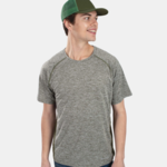 Holloway Adult CoolCore Short Sleeve T-Shirt. 87% polyester/13% elastane heathered wicking knit with CoolCore copyright technology. 92% polyester knitted mesh/8% elastane wicking knit inserts with CoolCore technology. Garment protects against the sun with 50+ UPF on body, 25+ on mesh inserts. Wicks moisture. Tagless label. Crew neck. Raglan Sleeves.