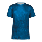 Holloway Youth Cotton-Touch Poly Cloud Short Sleeve T-Shirt. 5.6 Ounce 95% polyester/5% spandex wicking knit. Fully sublimated design. Wicks moisture. Odor resistant. Tagless Label. Crew neck. Garment protects against the sun with 50+ UPF. Set-in sleeves. Because of the manufacturing process of the fabric and garment, each t-shirt will be unique.