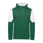 HOLLOWAY ADULT ALL AMERICAN HOODIE. 7.6 OUNCE 55% POLYESTER/41% COTTON/4% RAYON, SUPER SOFT FLEECE WITH WOVEN LABEL. EXTERIOR FAUX LEATHER LOGO LOOP LABEL. JERSEY LINED HOOD WITH METAL TIPPED DRAWCORD (ADULT ONLY). SET IN SLEEVES. FRONT POUCH POCKET. SPANDEX BLEND RIB-KNIT CUFFS. OPEN BOTTOM WITH A DROPPED TAIL AND SIDE VENTS.